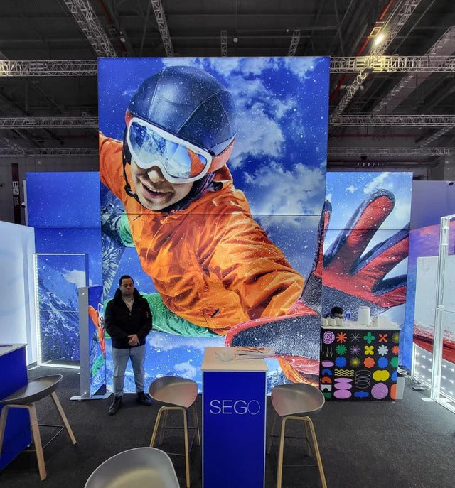 また、当社のバックパネルには、本体スタンドとスクリーン、付属のライトを1つにまとめて収納できるハードケースをお付けいたします。車輪付きなので移動も楽々です。また、ハードケースは、付属の天板を乗せることでブースのカウンターテーブルとしてもご利用いただけます。