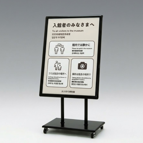 さらにはアイキャッチ効果抜群の等身大パネルまで、あらゆるシーンに対応する案内什器を豊富に取り揃えております。