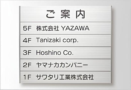 From ¥46,728 (税抜)¥57,112単価 /利用不可ステンレス製のシンプルなデザインで、各階毎に表示基板を組み込むタイプのセパレート型案内板です。...