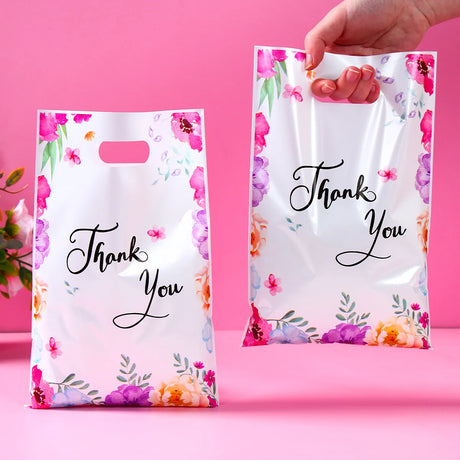 デイジー柄が可愛いプラスチック製のギフトバッグは、パーティーやイベント、店舗での使用に最適です...