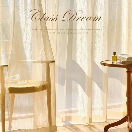 フレンチシャンパンゴールドのエレガントなシアーカーテンは、リビングルームや寝室、バルコニーに最...