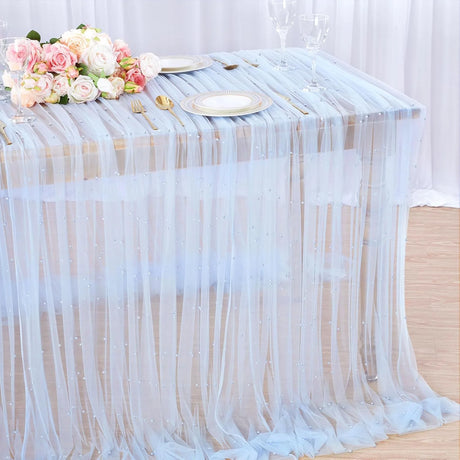インテリア・パーティ装飾 | パール付きチュールテーブルランナー | 2/3/5m