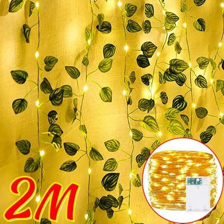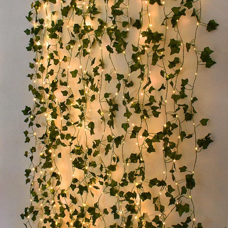 人工植物・グリーンアイビーリーフ・フェアリーライトガーランド・シルク製