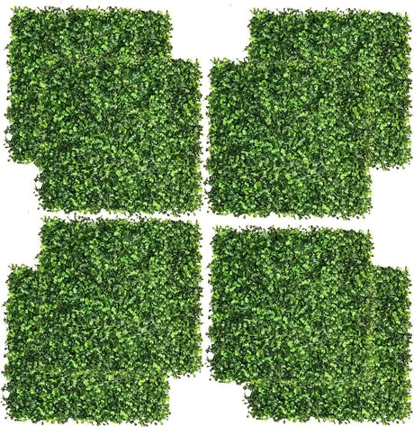 リアルな質感とナチュラルな色合いが魅力の人工ユーカリ生垣パネル。25cm角のフェイクグリーンマ...