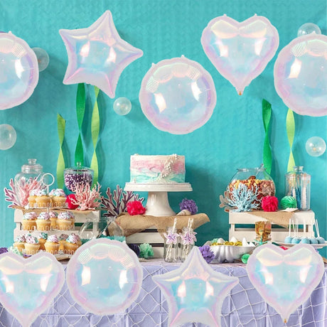 キラキラ輝く虹色のオーロラカラーバルーン登場! スターとハートのデザインが可愛らしく、マーメイ...