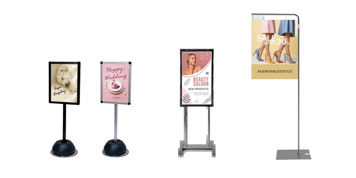 ポスターパネル用のパネルスタンドです。スタイリッシュなデザインのスタンドでオシャレにポスターをかざりませんか? サイズ展開も豊富なので、お探しのスタンドがきっと見つかります。 展示会やイベント、オフィス、お店、ショールームやロビーなど様々な場所で活躍!