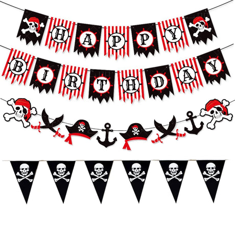 イベント・ハロウィン装飾|海賊パーティー用スカルバナーガーランド
