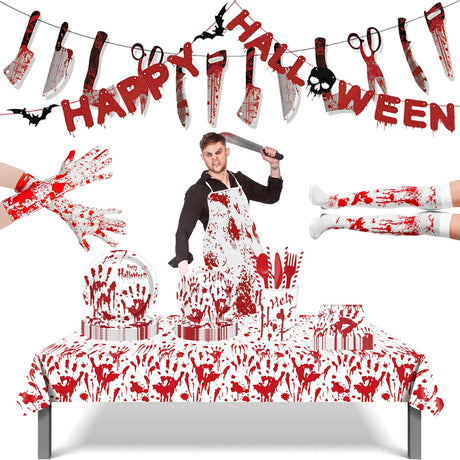 イベント・ハロウィン装飾|ハロウィン血のナイフバナーセット(16×13cm)