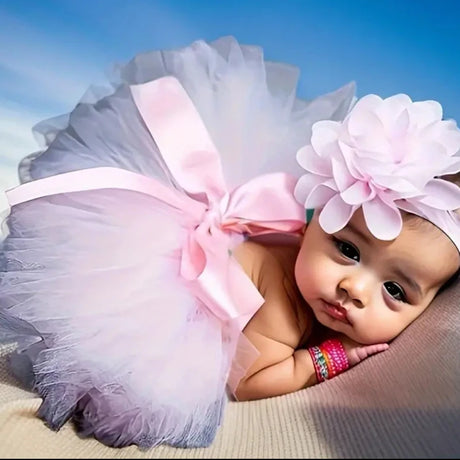 新生児用 チュールスカート+フラワーヘアバンドセット(0-1ヶ月)