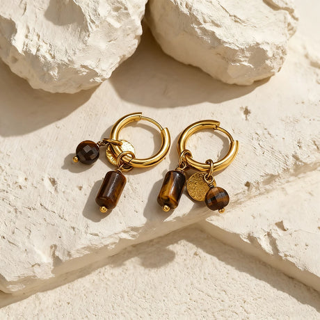 ヴィンテージレッドのオイルドロップが施された、18Kゴールドメッキのステンレススチール製ジュエ...