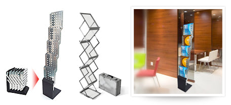 折りたたみ式のカタログスタンドの利点は、なんといっても持ち運びが楽なところです。 イベントや展示会でカタログを置きたいときもたたんでバックに入れて持ち運べます。