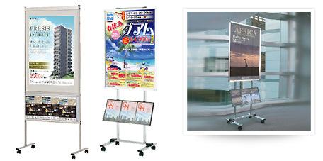 ポスターでお客様の興味をひいてからパンフレットをてに取っていただくという、広告効果と訴求効果を両立できる優れもの!展示ブースで目立つようにアピールしたり、旅行のポスターとパンフレットを一緒に掲示したりと使い方は千差万別です。ポスターの入替も簡単にできますので、移り変わりの多い商品や企画、イベント等の掲示にぴったりです。