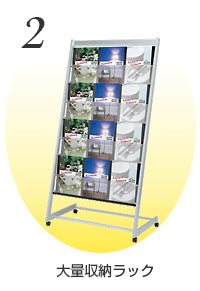 カタログをたくさん置けるタイプ。段数、列数もさまざまなタイプをご用意しております。