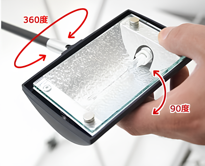 ライトの点灯部分は、上下に90度、左右に360度まで可動し、自由に角度を設定できます。