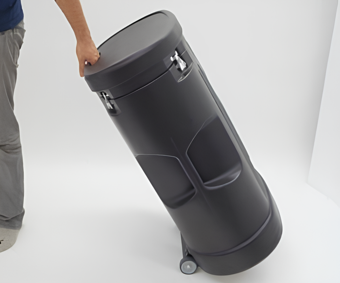 付属のケースに本体フレームとスクリーン、スポットライトのすべてを収納できます。ケースにはキャスターが付いているので移動もスムーズに行えます。