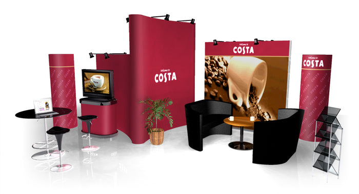 ポップアップにはストレートやカーブ以外にもシェイプ、ウェーブ、T型、L型等、多くの種類がありますのでブースサイズに合わせてお選びいただけます。