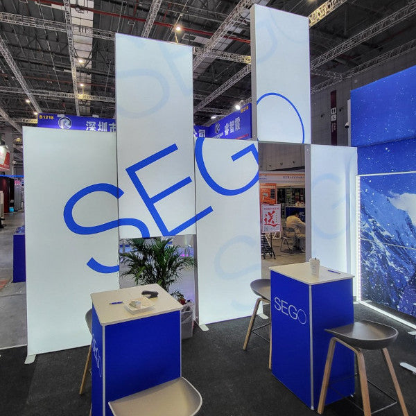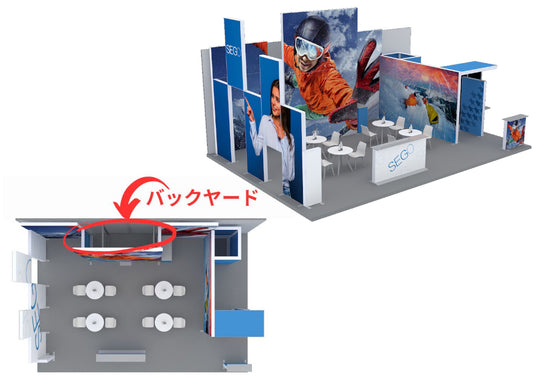 セゴは、5種類のコネクターを使用し、高さの違う本体同士でも簡単に連結してサイズを拡張できます。またこのコネクターを使ってパネルをブリッジやL字スタイルにアレンジすることも可能です。アイデア次第でアレンジは広がりますので、オリジナルのブースデザインを作り上げることができます。