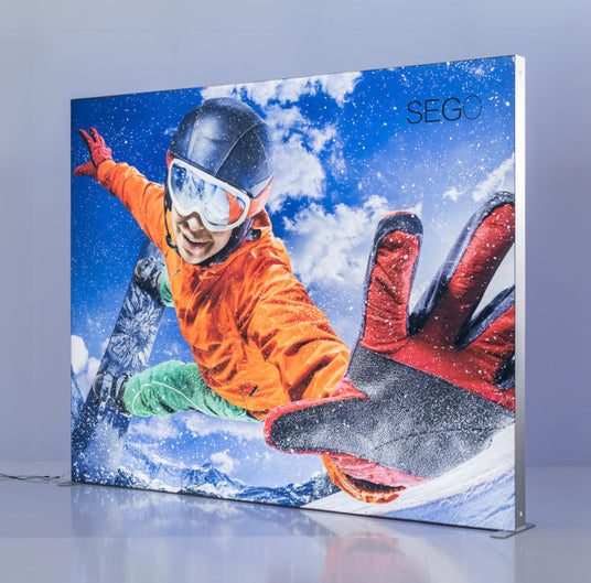 ![セゴライトボックス|誉PRINTING]()  LEDライト内臓本体フレームの上下にLEDが内蔵されており、スクリーンを色鮮やかに照らしてくれます。フレームから放たれるLEDライトがシーンを問わず広告効果を発揮します。片面使用の場合はLEDライトの照射漏れを防ぐ白地の遮光スクリーンをご利用いただけます。