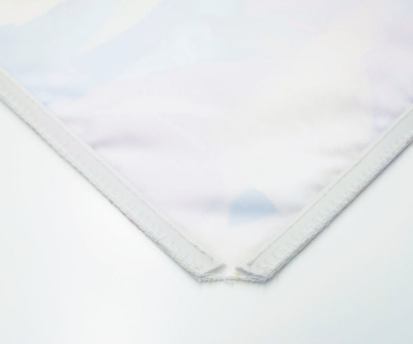 ![]()  弊社取り扱いの布系メディア(クロス)は透け感のあるウォータープルーフ素材です。若干のストレッチ(伸び感)があるので、ピンと綺麗に張って取り付けることができます(※提携工場が多数あるため、工場により布の質感に若干の相違が出る場合もございます。)