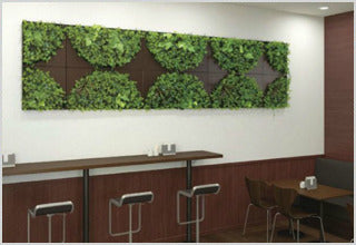 人気の緑の葉を装飾したインテリアパネルはどんなスペースにも適応。壁面を一面覆うことも可能で、観葉植物とは一線を画した使い勝手のよいグリーンパネルです。