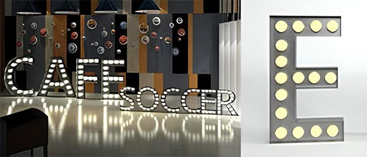 ちらっと見える電球がとてもおしゃれなサインです。看板にセットしてマーキーライト看板としてもおしゃれです。