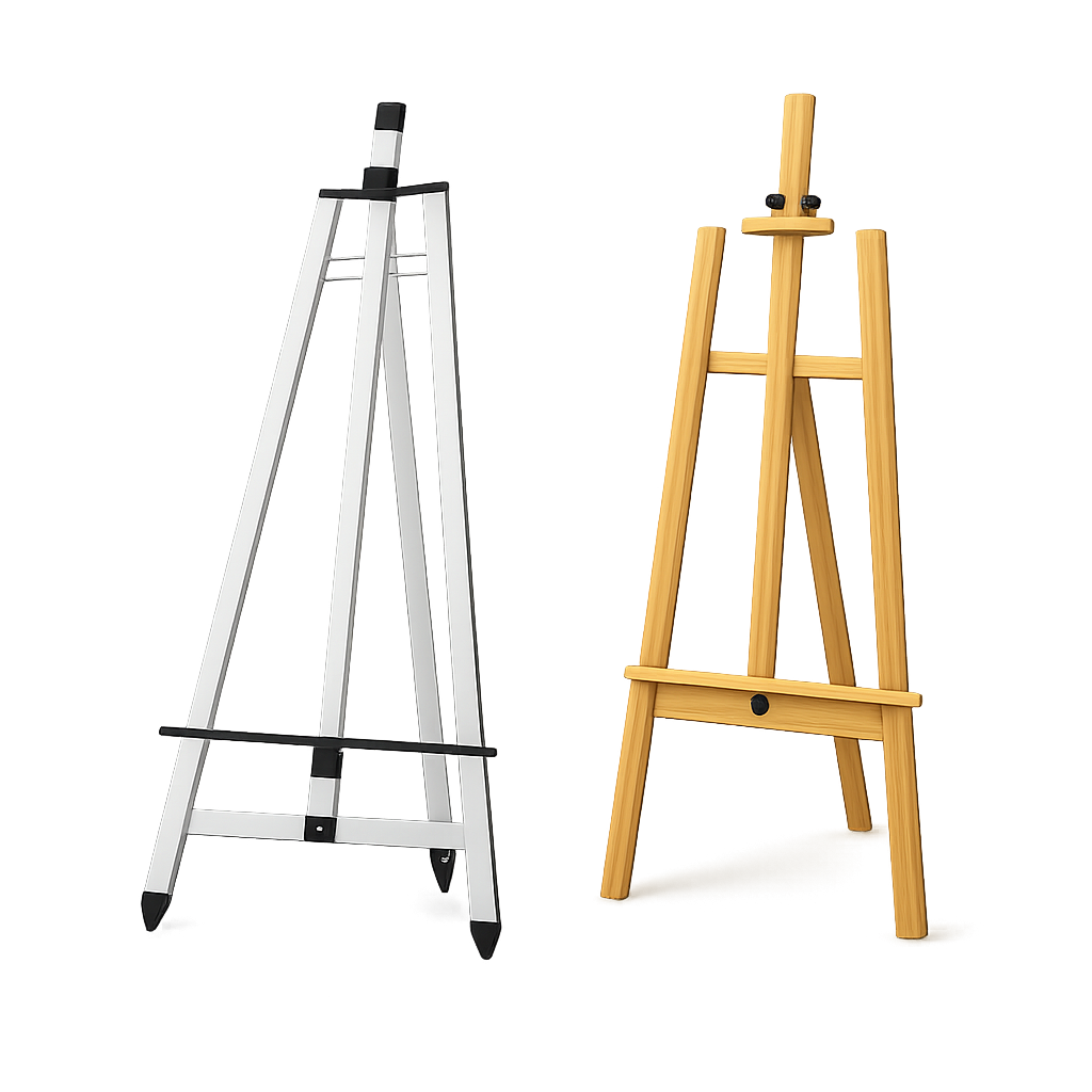 木製とアルミ製のイーゼルは、それぞれに特性があります。