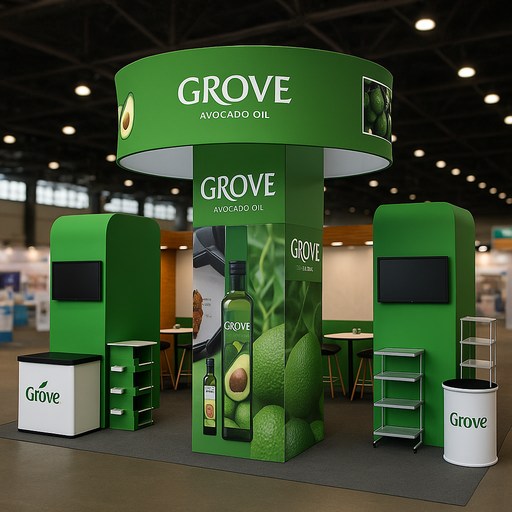 ブースの中央やアイランド型スペースに設置することで、来場者の進行方向を問わず情報を届けられます。ロゴやメインコピーと製品詳細など、表裏でデザインを変えることで訴求の幅が広がります。
