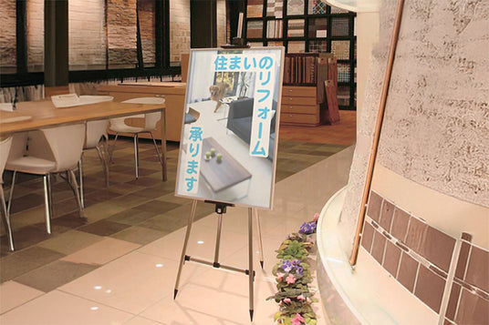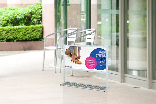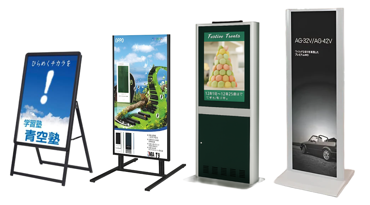 受付やエントランスに設置する立て看板、ブース装飾としてのバックボードや案内板、さらには屋外での誘導に適した大型看板まで、用途はさまざま。