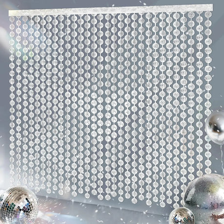 70年代のディスコを再現するシルバーホイルフリンジカーテンで、パーティーを華やかに演出します。...