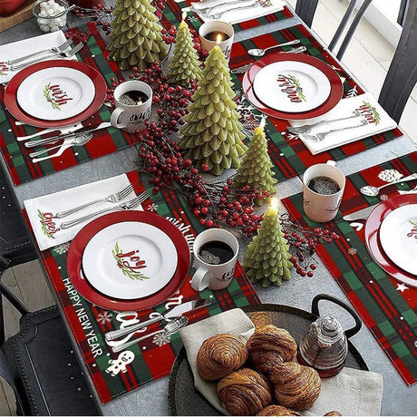 クリスマスムードを高めるチェック柄のテーブルクロスで、ホームパーティーやダイニングを華やかに演...