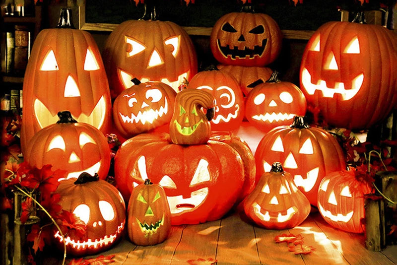 このハロウィン背景布は、邪悪なカボチャやゴーストのデザインが施され、パーティーや写真撮影に最適...