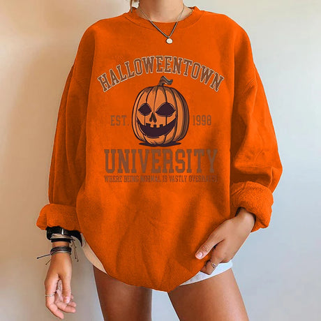 イベント・ハロウィングッズ|裏起毛ハロウィンパンプキン柄トレーナー(S~XXL)