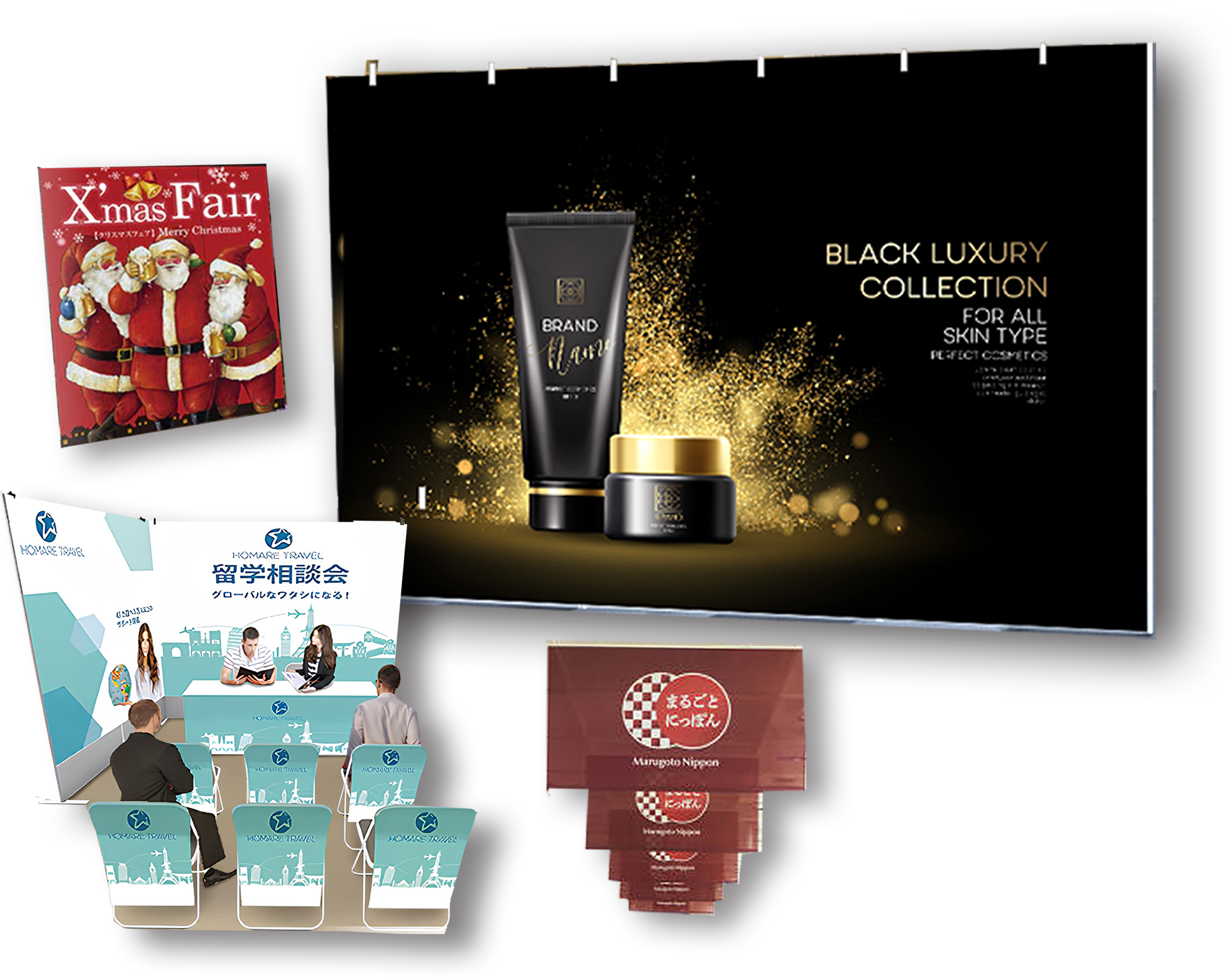 ●イベントや展示会では、遠くからでも目を引くデザインが求められますので大判印刷のタペストリーならダイナミックな装飾が可能です。