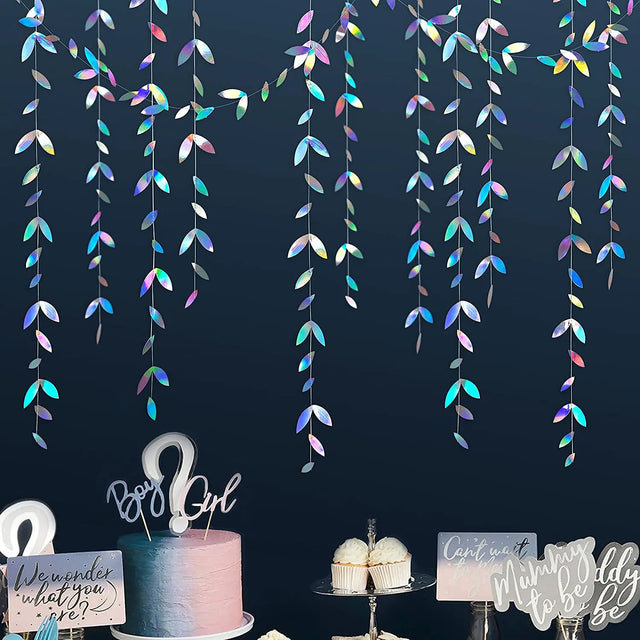 虹色に輝くホログラフィック紙で作られたガーランドは、あらゆるパーティーを華やかに演出します。