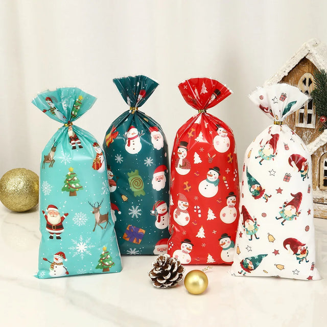 華やかなクリスマスのデザインが施されたギフトバッグで、キャンディやスナックの包装に最適です。