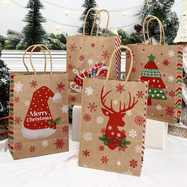 クリスマスシーズンにぴったりな、キャンディやクッキーを贈るのに最適なクラフト紙製ギフトバッグです。