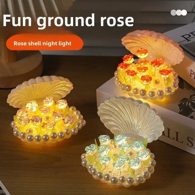 手作りでデコレーション可能なシェルチューリップローズナイトライトは、寝室の雰囲気を優しく演出します。
