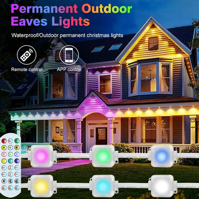 屋外で使用できる防水仕様のRGBライトストリップは、APPとBluetoothで簡単に操作でき、クリスマスやウェディングなどの特別なイベントを華やかに演出します。