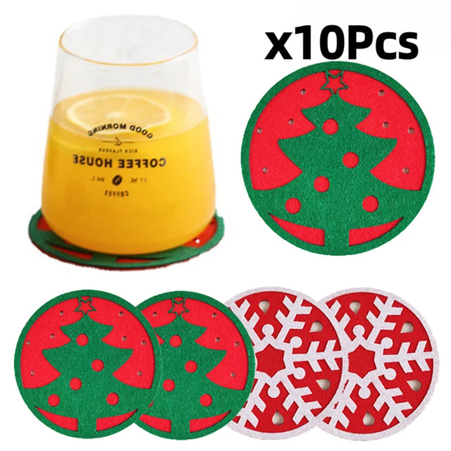 クリスマスパーティーにぴったりな、環境に優しいフェルト素材のコースター10枚セットです。
