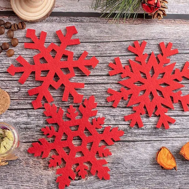 家庭用やパーティーにぴったりな、クリスマスデザインのスノーフレークコースターでテーブルを華やかに彩ります。