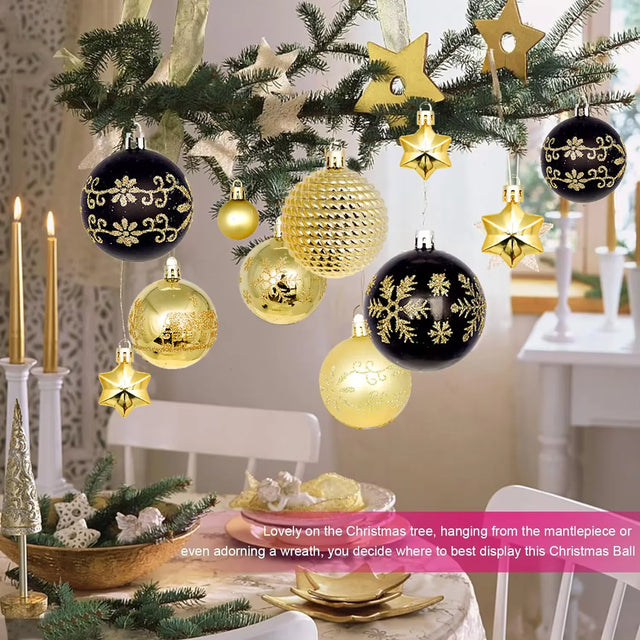 ブラックとゴールドのクリスマス吊り下げボールは、パーティーやショッピングモールの装飾に最適です。