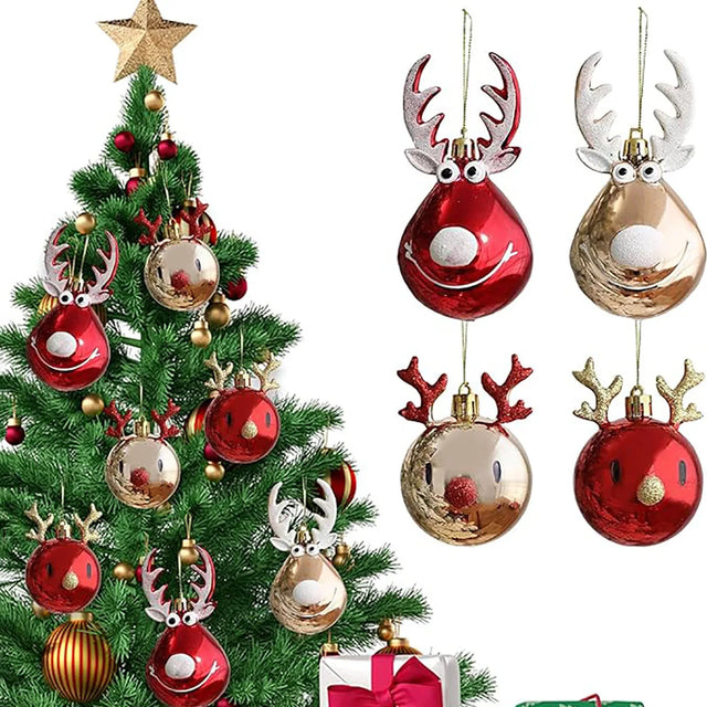 エルクデザインのクリスマスボールでツリーを華やかに飾り、ホームパーティーやニューイヤーにぴったりのデコレーションアイテムです。