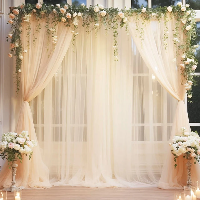 ウェディングメッシュバックドロップカーテン
