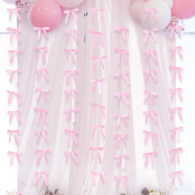 華やかなピンクのサテンリボンガーランドで、特別なイベントを美しく演出します。