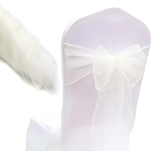 オーガンザ素材のチェアサッシュで、結婚式やパーティーの装飾を華やかに演出します。