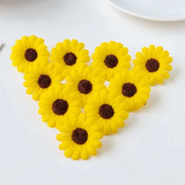 華やかで可愛らしいシルク製の人工ひまわり(直径4cm)です。スクラップブックやギフトラッピング、DIYクラフトはもちろん、クリスマス、誕生日、ウェディング、ブライダルシャワー、卒業祝い、新築祝いなど、さまざまなイベントや装飾に最適です。