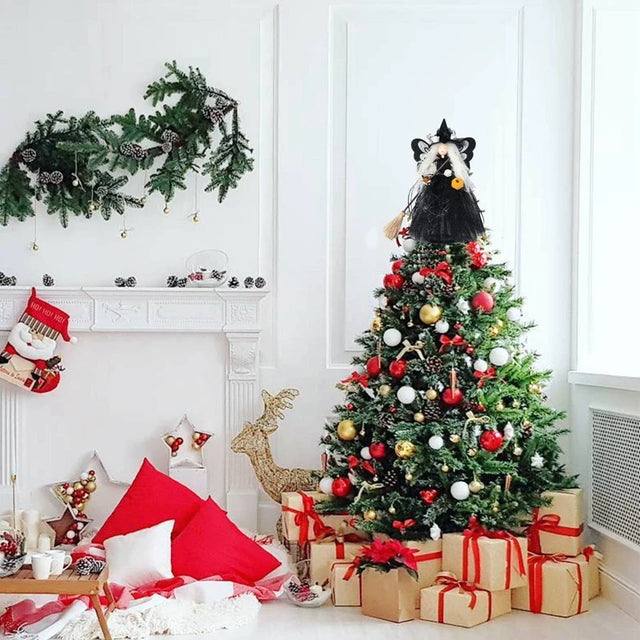 ハロウィンやクリスマスの飾りに最適な、ミステリアスな魔女デザインのツリートッパーです。