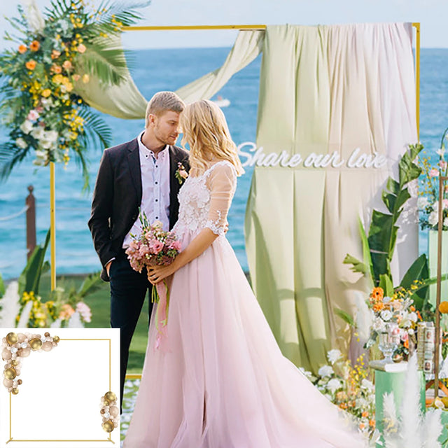 メタル製の2Mある正方形のフレームスタンドで、花やバルーンなどを装飾して華やかにウェディングパーティーなどのイベントを演出するアイテムです。