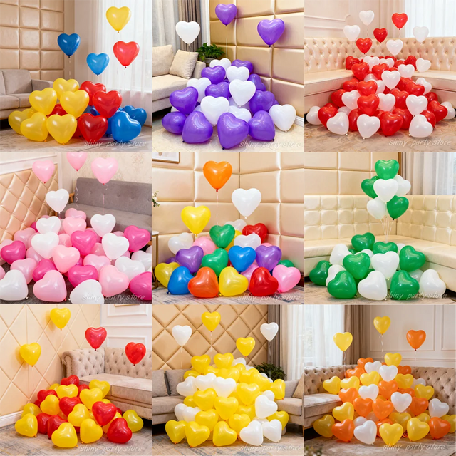 お祝いの場を華やかに彩る10インチのハート型ラテックスバルーンです。