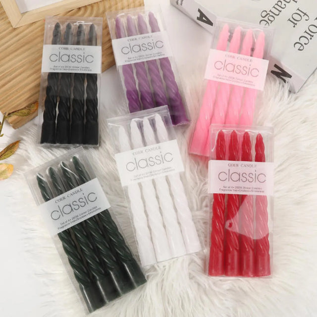 ロマンチックな雰囲気を演出する4個入りの高品質テーパーキャンドルです。